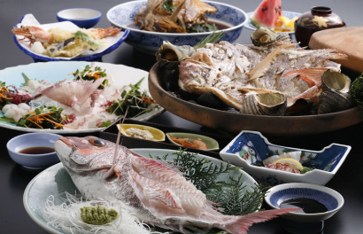 創業以来受け継がれる「鯛の活造り料理」。新鮮な生き鯛を使用し、鮮度を極限まで活かした一皿は、引き締まった弾力ある身と鯛ならではの旨みを存分に楽しめる贅沢な逸品です。