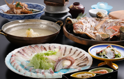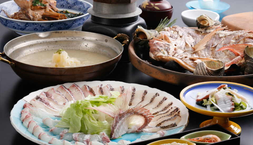 登場以来、テレビや雑誌、新聞でたびたび紹介されている話題の人気料理です。淡路島特産の甘み豊かな玉ねぎをたっぷり使ったフォンデュ鍋で、鯛の薄造りや淡路レタスなどをしゃぶしゃぶにしてお楽しみいただけます。