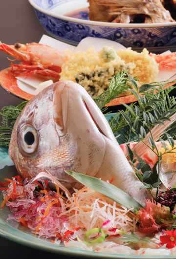 新鮮な鯛は、活き造りとして楽しむだけでなく、アラ煮やお吸い物、さらには宝楽焼きなど、一尾丸ごと余すことなく味わえる多彩な調理法が魅力です。四季折々の旬の味覚を、鯛の美味しさで存分にご堪能ください。