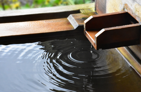 ph7.55の弱アルカリ性肌触りのよさで日本三大美人湯といわれる川中温泉、龍神温泉、湯の川温泉に近い数値を有しており、皮脂の鹸化が起き、皮膚の上に石鹸に類似した物質が作られるため、お肌がヌルヌルになります。